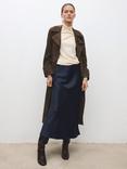 Sosandar Pleated Satin Midi Skirt, Navy Blue