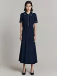 Ghost Sophia Contrast Piping Midi Dress, Navy