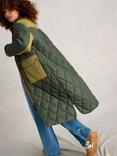 White Stuff Stella Longline Quilted Coat, Dark Green