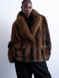 Hobbs Rosanne Faux Fur Coat, Alder Brown