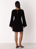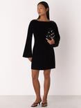 Whistles Velvet Flared Sleeve Mini Dress, Black