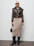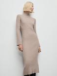 Mango Perkins Neck Ribbed Dress, Medium Brown