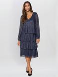 Gina Bacconi Rosemary Tiered Midi Dress, Navy