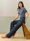 Brora Wide Leg Pure Organic Cotton Trousers, Blue