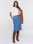 Mint Velvet Seam Detail Denim Midi Skirt, Blue
