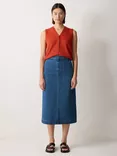 Jigsaw Denim Stitched Waist Midi Skirt, Vintage Mid Blue