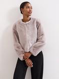 Phase Eight Crystal Faux Fur Jacket, Pale Grey