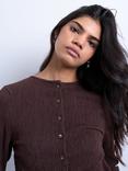 Topshop Crinkle Button Down Top, Brown