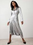 Mint Velvet Metallic Midi Shirt Dress, Silver