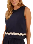Accessorize Sleeveless Ric Rac Top, Black, Black