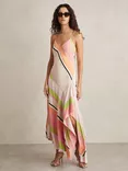 Reiss Hallia Retro Stripe Draped Asymmetric Maxi Dress