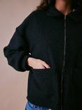 Mint Velvet Contrast Crochet Trim Jacket, Navy/Multi