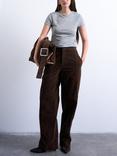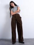 Topshop Faux Suede Wide Leg Trousers, Brown