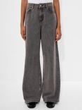 Kin Barrel Leg Front Seam Denim Jeans, Black