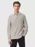 AllSaints Aspen Cotton Wool Blend Knit Polo Shirt, Moon Grey