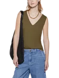 SISLEY Cotton V-Neck Tank Top, Military Green