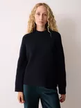 Jigsaw Fisherman's Rib Pure Wool Jumper, Navy