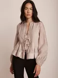 Mint Velvet Tie Front Pleated Blouse, Natural