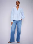 MOS MOSH Dara Shane Embroidered Wide Leg Jeans, Mid Blue
