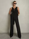 Reiss Eva Plunge Boned Wide Leg Jumpsuit, Black