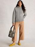 Whistles Crew Neck Wool Blend Cardigan, Taupe