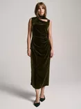 Mint Velvet Scarf Detail Velvet Midi Dress, Green Khaki