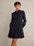 Hobbs Tina Pleated Drop Hem Dress, Navy