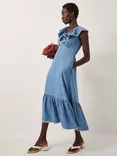 Monsoon Dottie Ruffle Midi Dress, Blue