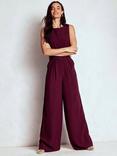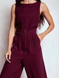 Boden Gwen Belted Slash Neck Jumpsuit, Dark Cherry
