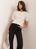 Mint Velvet Tailored Pearl Collar Shirt, Ivory