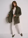 Wool Blend Fringed Trim Coat, Green Khaki