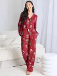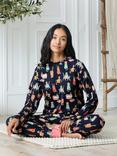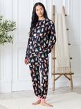 Chelsea Peers Skiing Dogs Long Pyjama Set, Navy