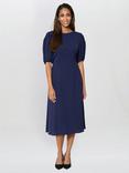 Gina Bacconi Flora Puff Sleeve Midi Dress, Navy