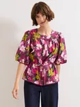 Phase Eight Pia Short Sleeve Floral Cotton Blend Blouse, Multi