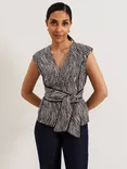 Phase Eight Sutton Wrap Front Leaf Print Top, Black