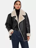 Whistles Faux Fur Aviator Biker Jacket, Black