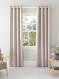 John Lewis Textured Weave Pair Blackout Lined Pencil Pleat Curtains, Rose Pink