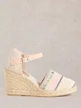 White Stuff Crochet Wedge Heel Espadrille Sandals, Ivory/Multi
