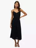 Superdry Half Button Tiered Midi Dress, Black