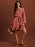Mint Velvet Crochet Trim Broderie Mini Dress, Pink/Multi