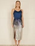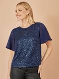 Yumi Sequin Short Sleeve Round Neck Blouse, Navy