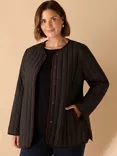 Curve Corduroy Collar Quilted Jacket, Black
