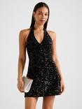 Forever New Riley Sequin Halter Mini Dress, Black, Black