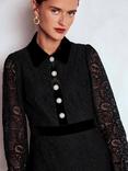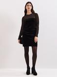 Whistles Velvet Flared Sleeve Mini Dress, Black