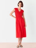 Whistles Petite Shirred Bodice V-Neck Dress, Mid Red