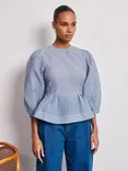 VIVERE Ada Crinkle Bow Back Top, Light Blue