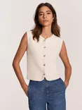 Mint Velvet Ribbed Button Waistcoat, Cream