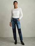 Reiss Petite Birch Patchwork Straight Leg Jeans, Blue/Multi