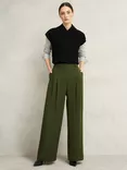 Hobbs Alya Wide Leg Trousers, Dark Fern Green