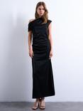 Topshop Ruffle Shoulder Satin Slip Dress, Navy